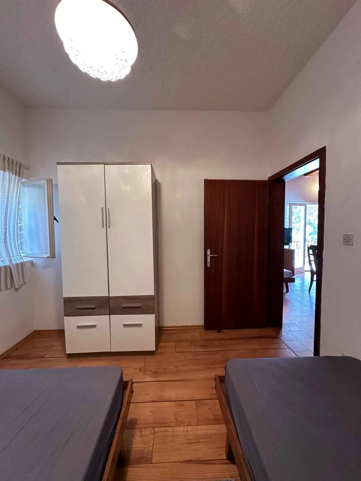 Apartment für 4 Personen: zwei Schlafzimmer, Küche, großes Wohnzimmer, Badezimmer mit WC, Grill. Außerdem eine große und schöne Terrasse (60 m2, nach Süden ausgerichtet). Das Apartment bietet einen wunderschönen Blick auf das Meer und die Insel Hvar. Erste Reihe zum Meer, Ruhe und Entspannung.